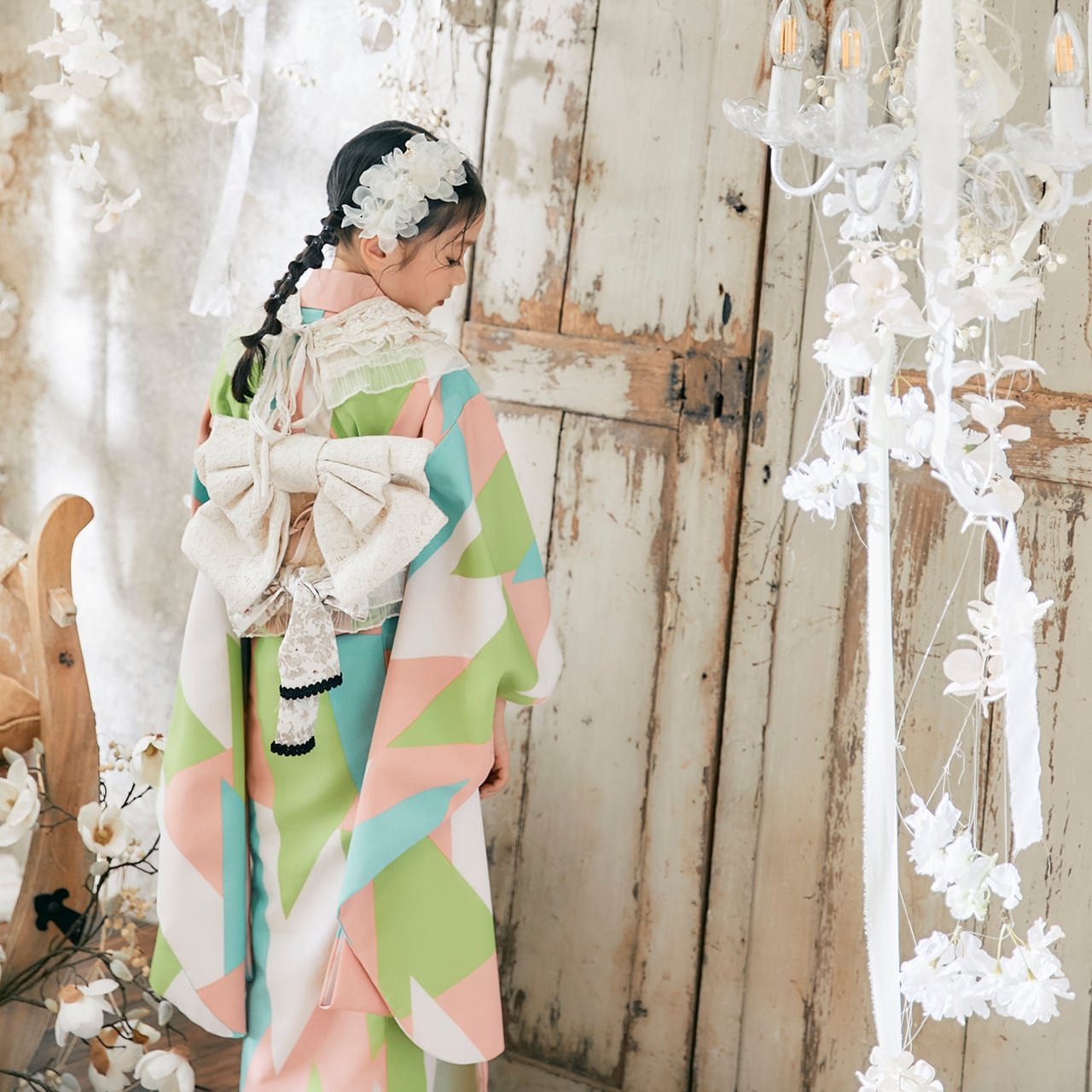 生成り色のレースの帯に白フリルをあしらったしごき。