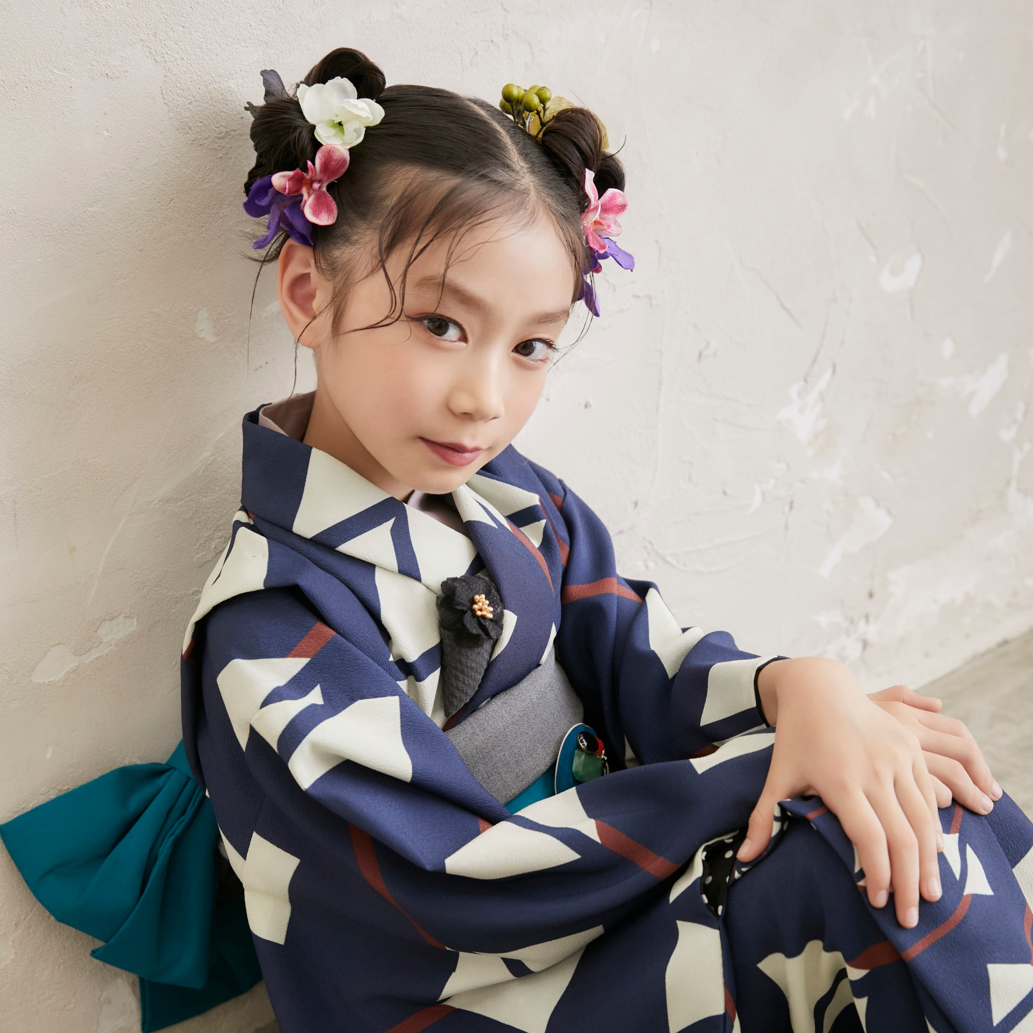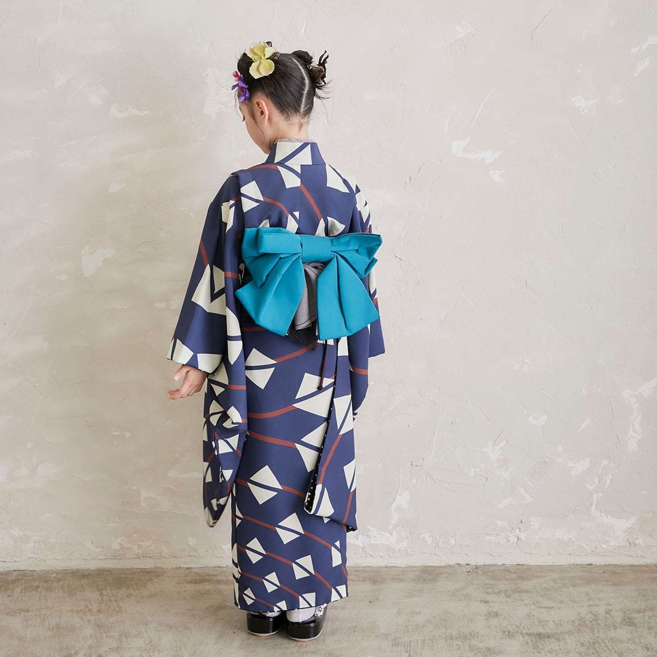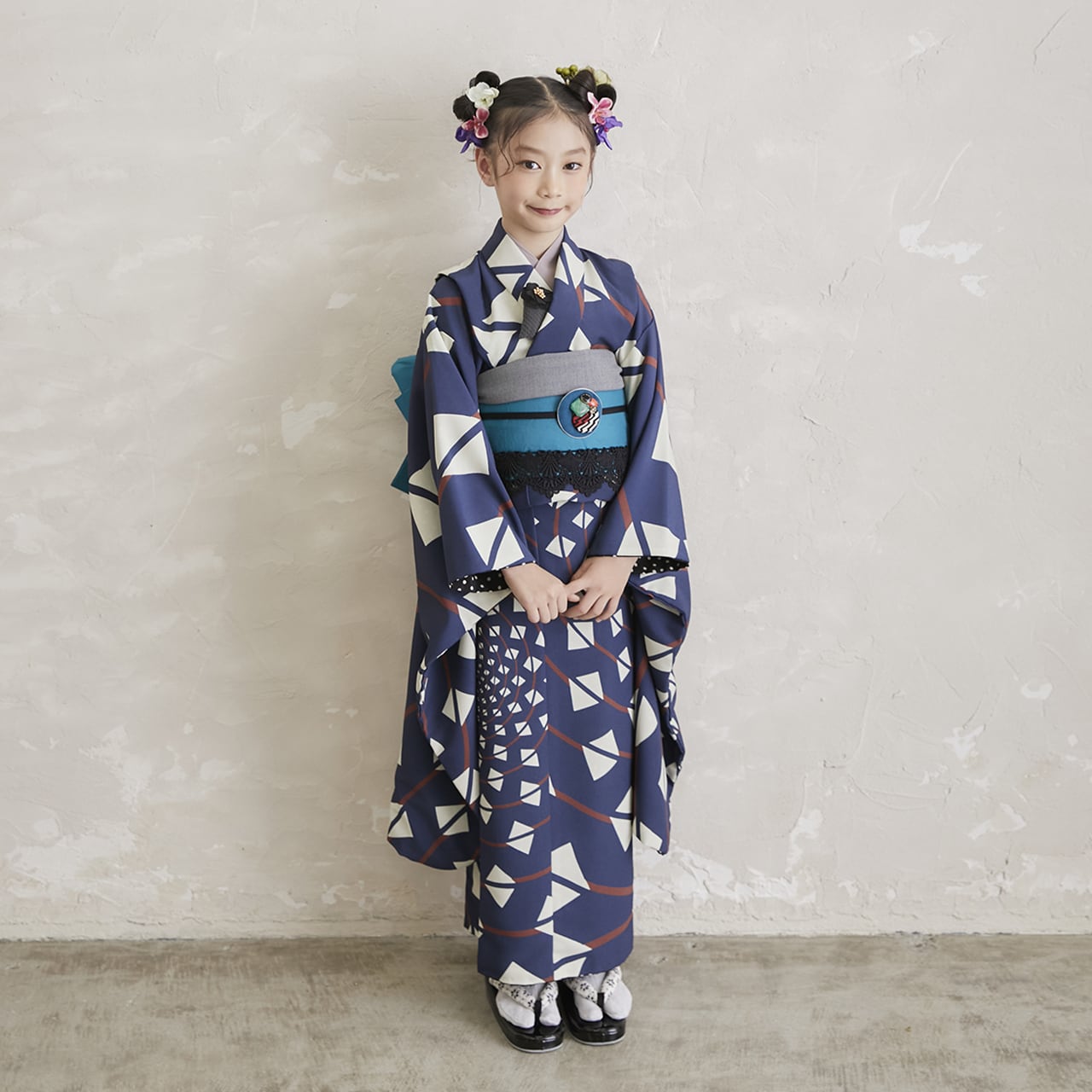 ネイビーをベースカラーに大胆な幾何学模様のモダン柄。