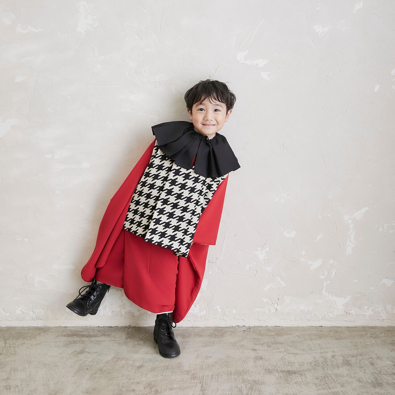 赤×千鳥格子×黒のコントラストがインパクトのあるレトロポップな仕上がりです。
