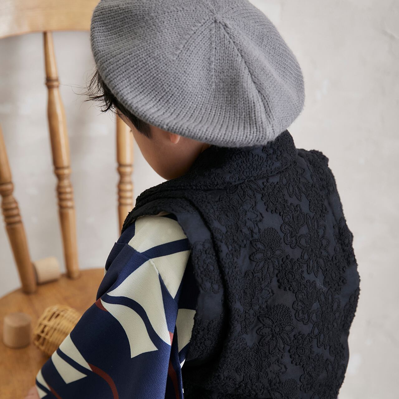 グレーのニットベレーで男の子も可愛くアレンジ。