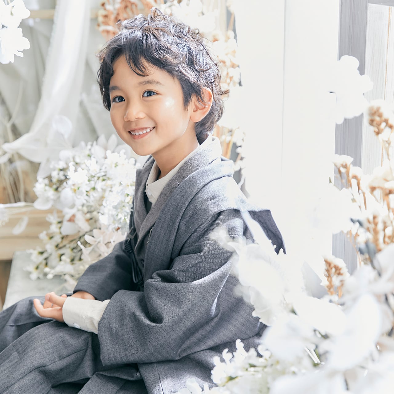 袴と同じ生地で仕立てた羽織はロングコートのイメージで、通常よりもロング丈に仕立てています。全体的に落ち着いた色味でトーンを揃え、大人っぽくスマートにまとめました。