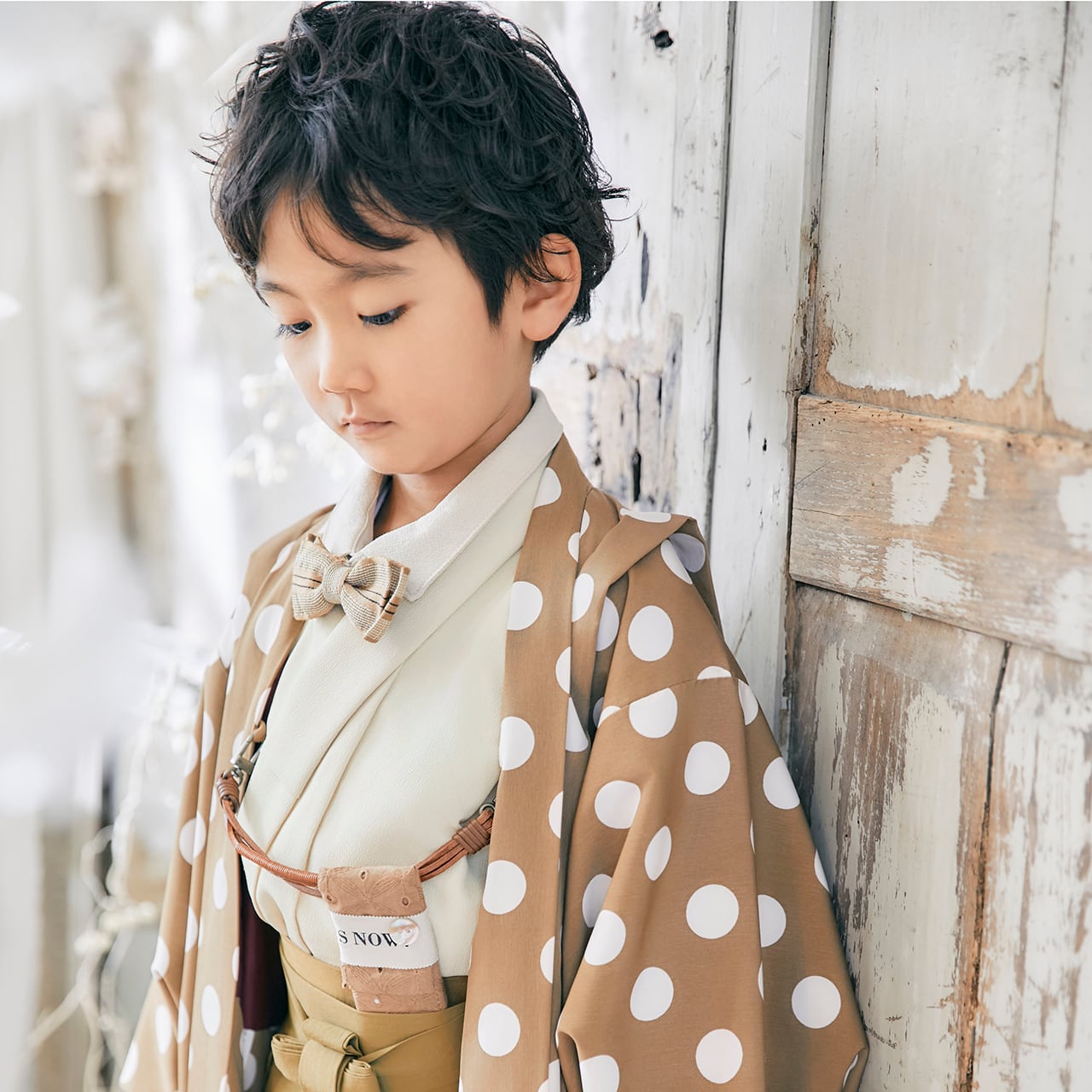 長着はクリームベージュ系の優しい色味で、ベージュシャツと同色系チョウタイで洋装テイストに仕上げました。