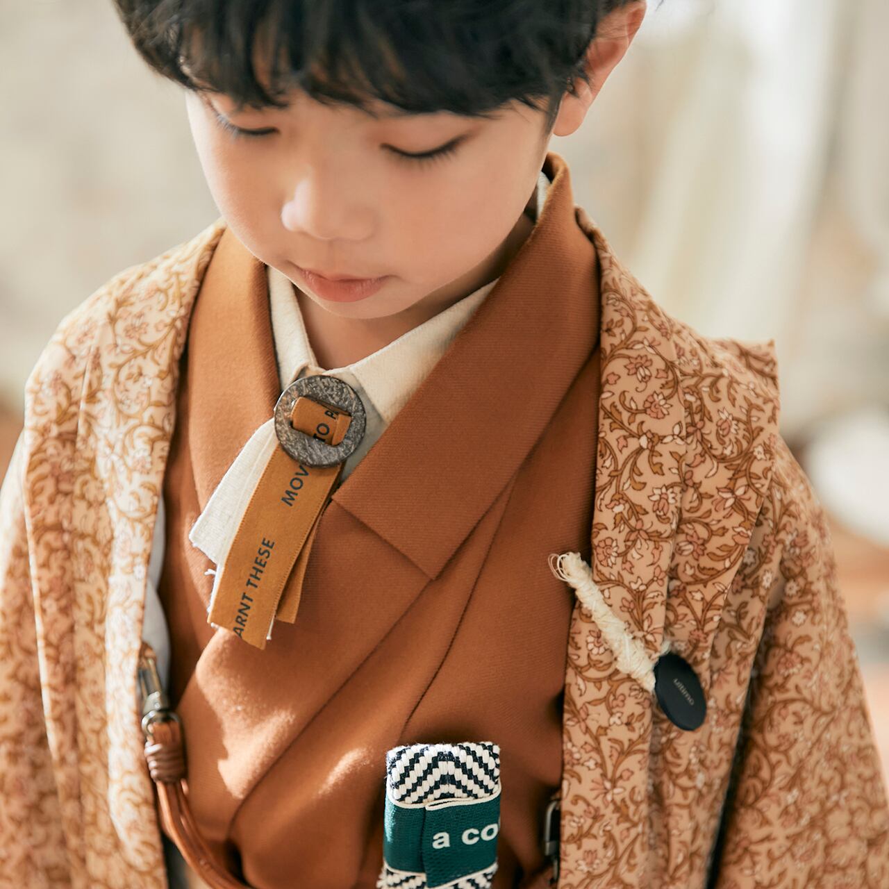 明るめのベージュの袴を合わせることでやさしく、芯のある風合いに仕上げました。
